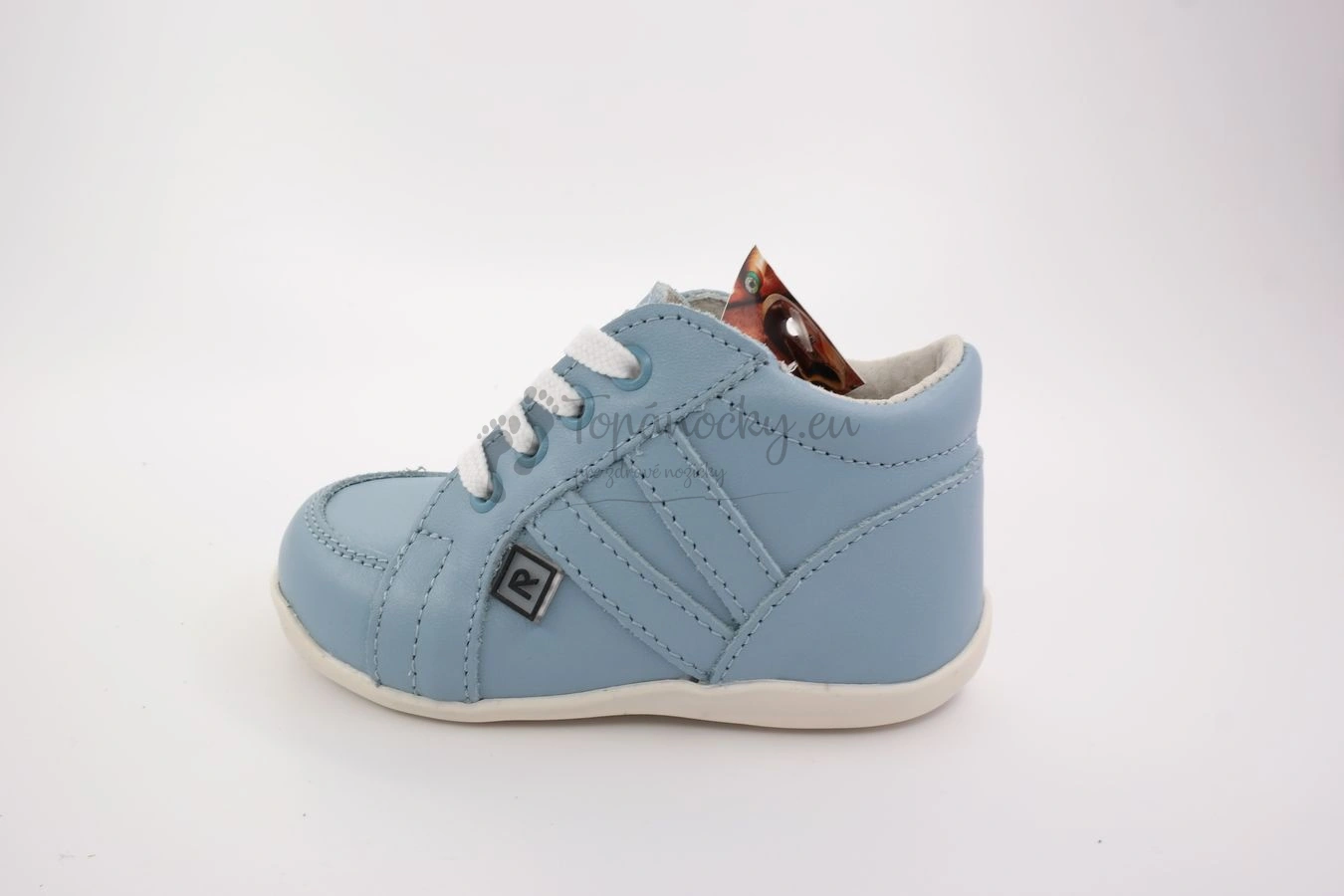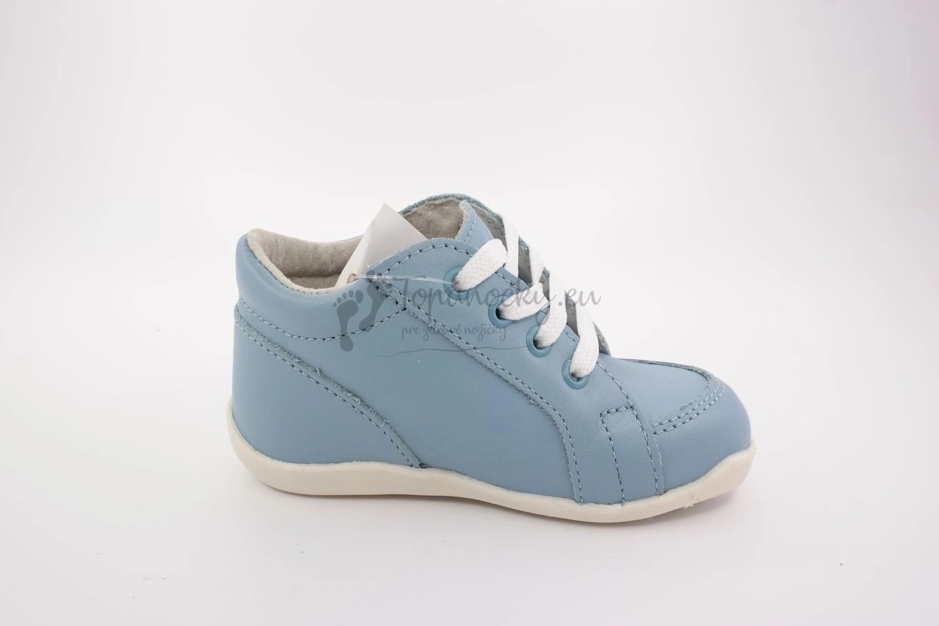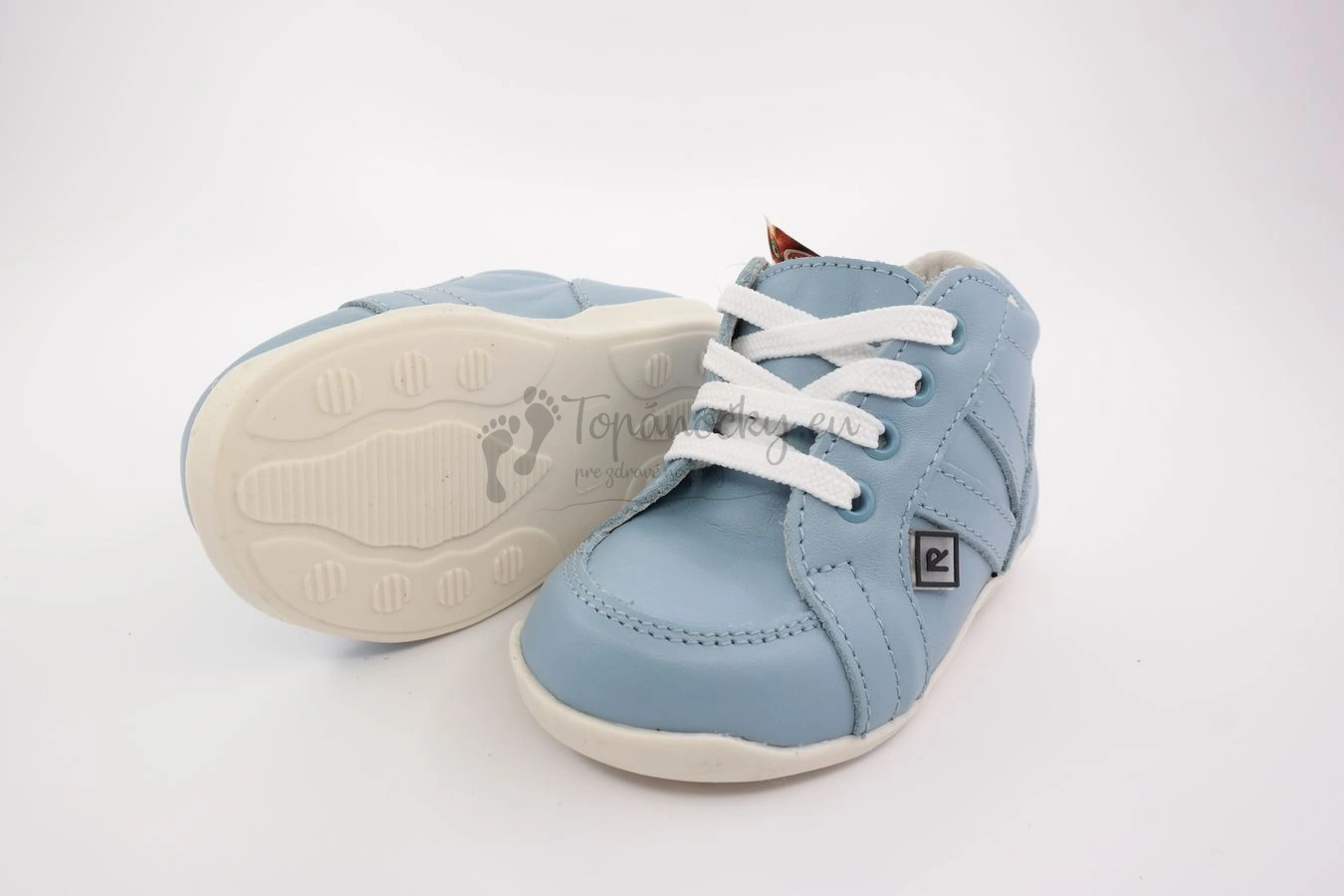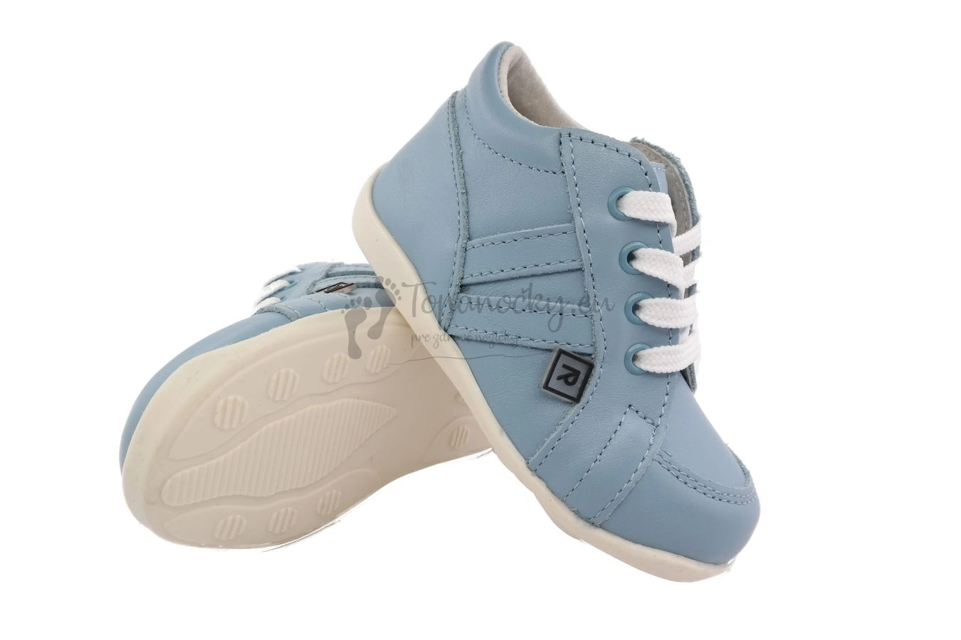 Tieto ľahké capačky, ktoré vyrába slovenský výrobca, firma Rak, sú vhodné pre deti už od prvých krokov. Podošva je ohybná a mäkká. Zároveň poskytuje dostatočnú ochranu pre detské chodidlo. Capačky sú celokožené, takže sú priedušné, ale zároveň odolné voči vode, čomu dopomáha aj špeciálna povrchová úprava. Výhodou je aj to, že sa mäkká koža prispôsobí prirodzenému tvaru chodidla. Podrážka je bielej farby a jemne vyvýšená na okope. Zvršok je svetlomodrej farby a je celokožený. Koža je hladká lícová. Stielka je tiež kožená, vyberateľná, antibakteriálna a anatomicky tvarovaná. Zapínanie je na šnurovanie.