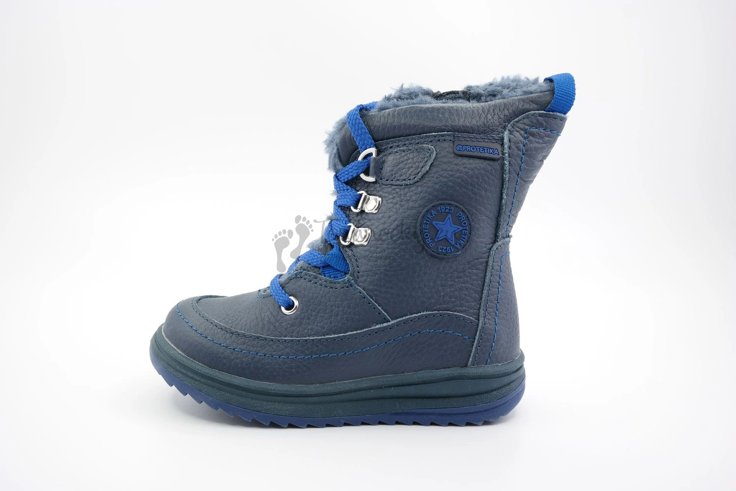 Zimná obuv Protetika Bory blue je vhodná na zimné obdobie pre chlapcov. Topánky sú zateplené kožušinkou. Topánky obsahujú vyberateľnú a kožušinkou pokrytú stielku. Na boku topánok sa nachádza zips na jednoduché obúvanie. Topánky sú nepremokavé a kožené. Farba modelu je tmavo-modrá.