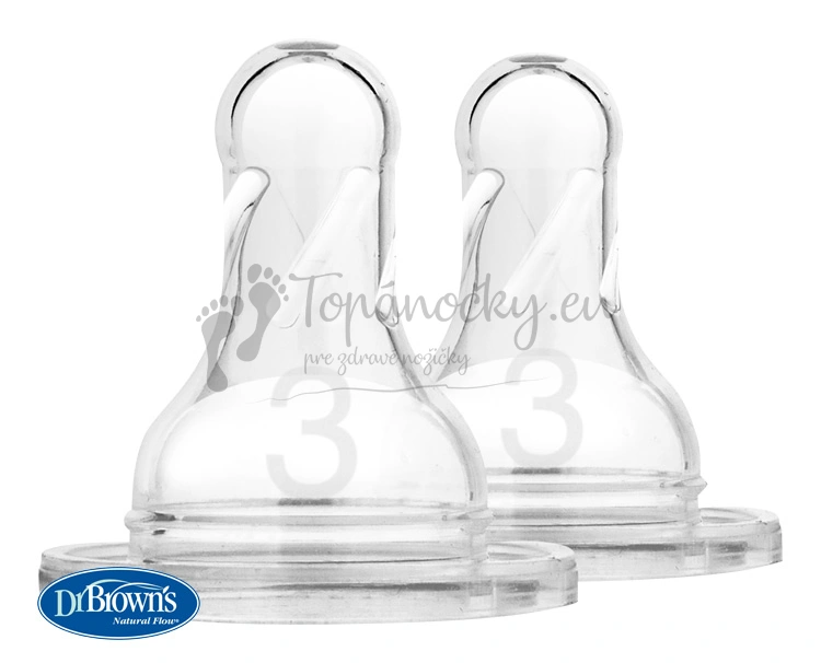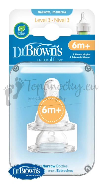 Náhradné silikónové cumlíky pre dojčenské fľašky Dr.Browns options+ NARROW stupeň 3 – BPA FREE – 2 ks (332-INTL)