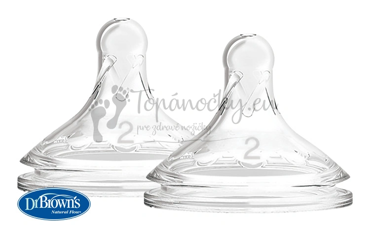 Náhradné silikónové cumlíky pre dojčenské fľašky Dr.Browns options+ WIDE-NECK stupeň 2 – BPA FREE – 2 ks (WN2201)