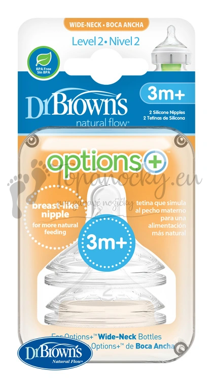 Tieto cumlíky boli navrhnuté výhradne pre dojčenské fľašky Dr.Brown's options+. Iné cumlíky nemusia správne fungovať a ich použitie pri kŕmení dieťaťa môže viesť k ťažkostiam.