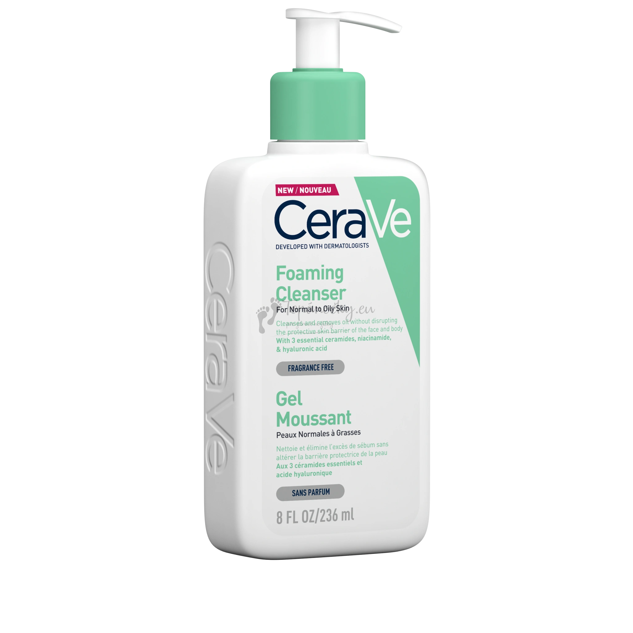 Čistiaci gél hĺbkovo čistí a odstraňuje nadbytok kožného mazu bez toho, aby bola narušená ochranná kožná bariéra pokožky tváre a tela. Obsahuje 3 typy esenciálnych ceramidov, niacínamid a kyselinu hyalurónovú. Technológia MVE: zaisťuje postupné uvoľňovanie. Je určený na normálnu až mastnú pleť a pokožku tela. Bez parfumácie, hypoalergénny.