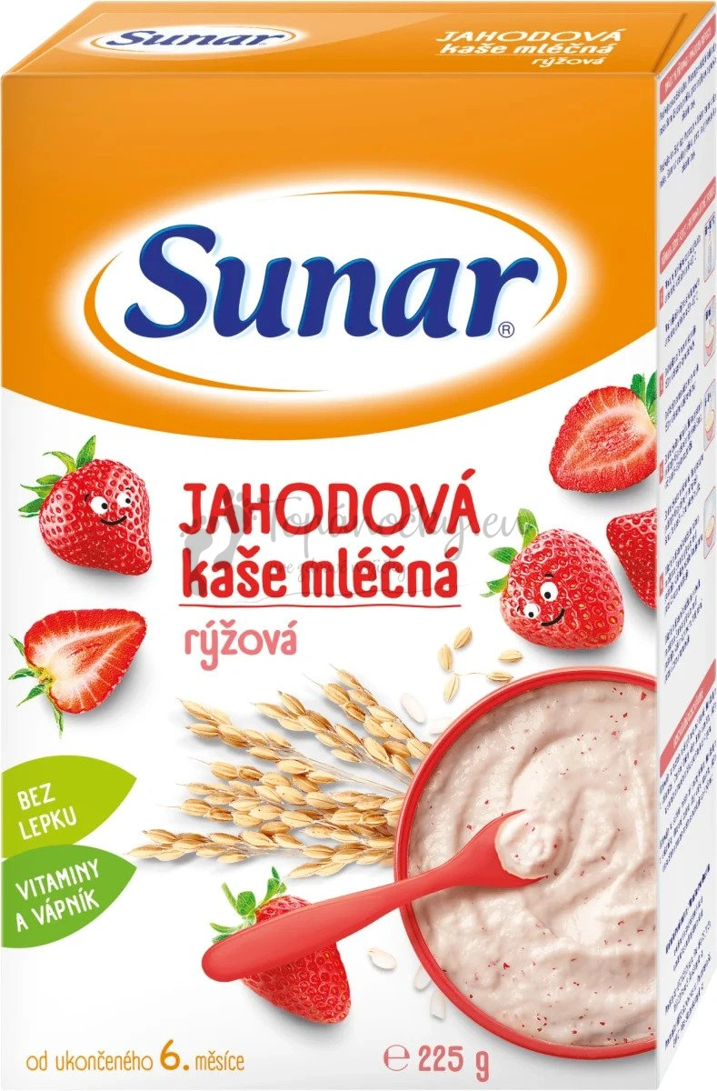 Spestrenie jedálneho lístka najmenších s novinkou od značky Sunar! Jahodová kaša mliečna ryžová Sunar kombinuje jemnú chuť, starostlivo vybrané cereálie a vitamíny a minerály pre rozvoj chuti a spestrenie jedálnička dojčiat a malých detí už od ukončeného 6. mesiaca. Vďaka zloženiu s vyváženým obsahom mlieka a prirodzeným obsahom starostlivo vybraných obilnín ponúka vynikajúcu chuť, ľahkú stráviteľnosť a spokojné bruško. Taktiež obsahuje dôležité vitamíny a minerálne látky vrátane vápnika a vitamínu D. Vyrobené z vysokokvalitných a prísne kontrolovaných obilnín a ďalších surovín bez použitia konzervačných látok a farbív. Sunar Jahodová kaša mliečna ryžová je skvelým obohatením jedálnička pri prechode na zmiešanú stravu!
